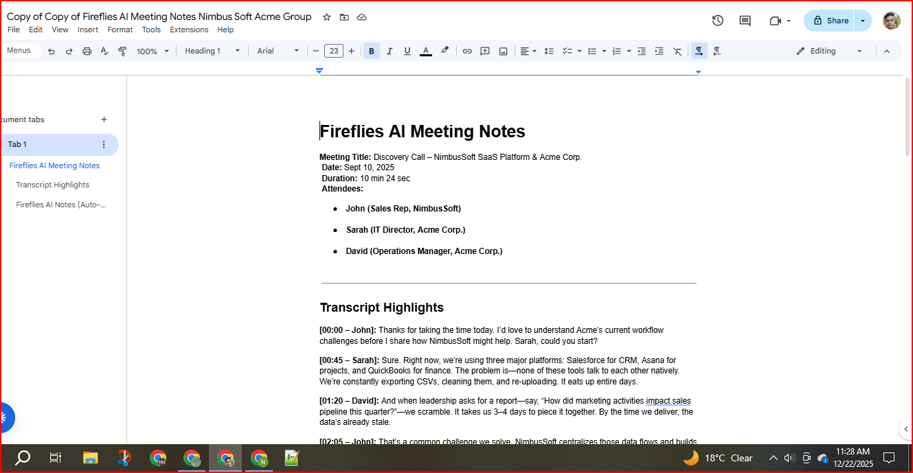 ✅ Analyzes meeting transcripts with AI to identify client pain points
